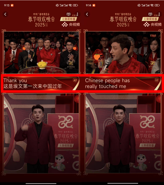 根据2022年的统计数据显示,中国听障人数约为2780万人,占全国残疾总人数的30%,听力障碍不只是生理性听力残疾,也包含因外界刺激导致的听力下降、弱听人群。在往年春晚的直播中,听障人士无法第一时间理解节目尽管有些听障团体会组织手语翻译,或使用讯飞听见APP等语音转文字软件进行字幕识别,但掌声、笑声、嘈杂的环境音让声音识别不精准,以及没有经过春晚定向语料训练的字幕识别,无法精准识别出字幕,让春晚少了一份阖家团聚的共鸣。